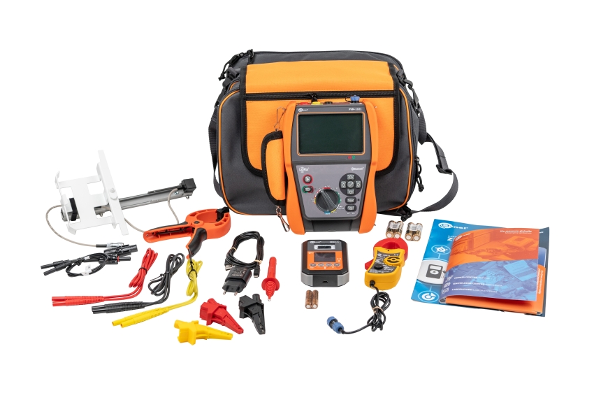 Além de sua ampla gama de funções de medição, o conjunto Sonel PVM-1021 Pro é fornecido com um conjunto abrangente de acessórios. Esses incluem cabos de teste, grampos jacaré, um grampo de medição de corrente AC/DC, adaptadores de conector MC-4 e um medidor de irradiância e temperatura com suporte dedicado. Todo o conjunto é embalado de forma organizada em uma maleta portátil e durável que garante transporte conveniente e organização eficiente de todos os acessórios.
