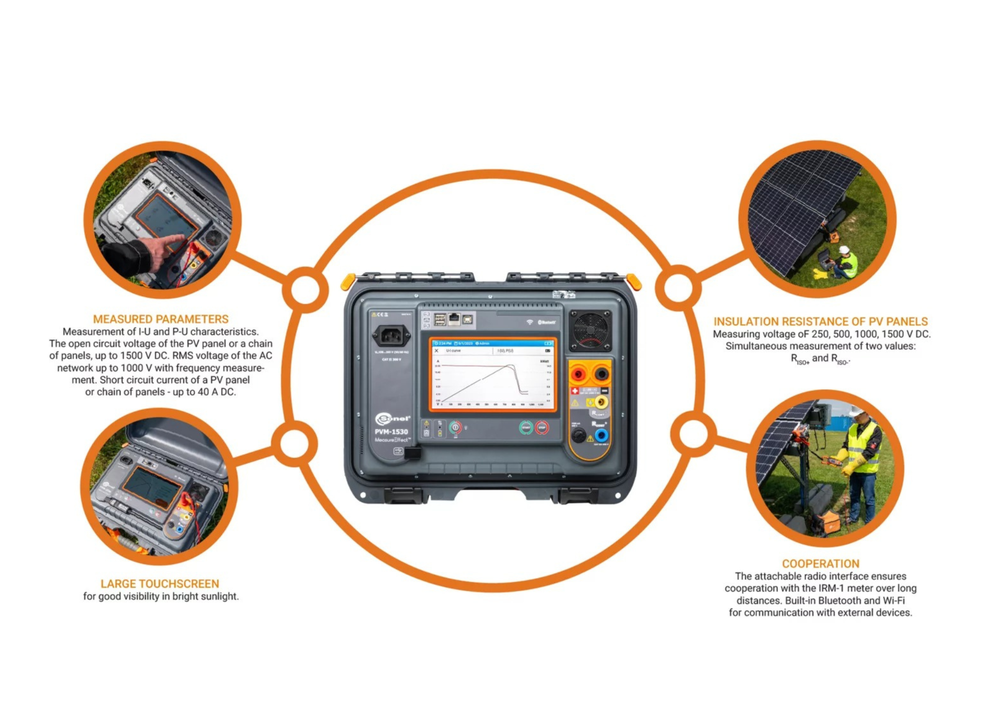 O PVM-1530 destaca-se por sua robustez e precisão, especialmente em ambientes desafiadores de instalações solares. Suas principais especificações incluem: